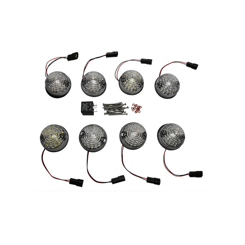 Comprend : 2 veilleuses AV, 2 feux stop / veilleuse AR, 4 clignotants et une centrale clignotante.