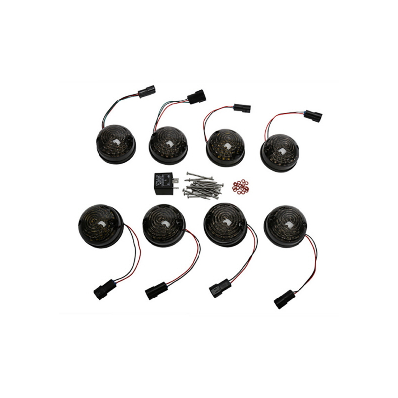 Comprend : 2 veilleuses AV, 2 feux stop / veilleuse AR, 4 clignotants et une centrale clignotante.