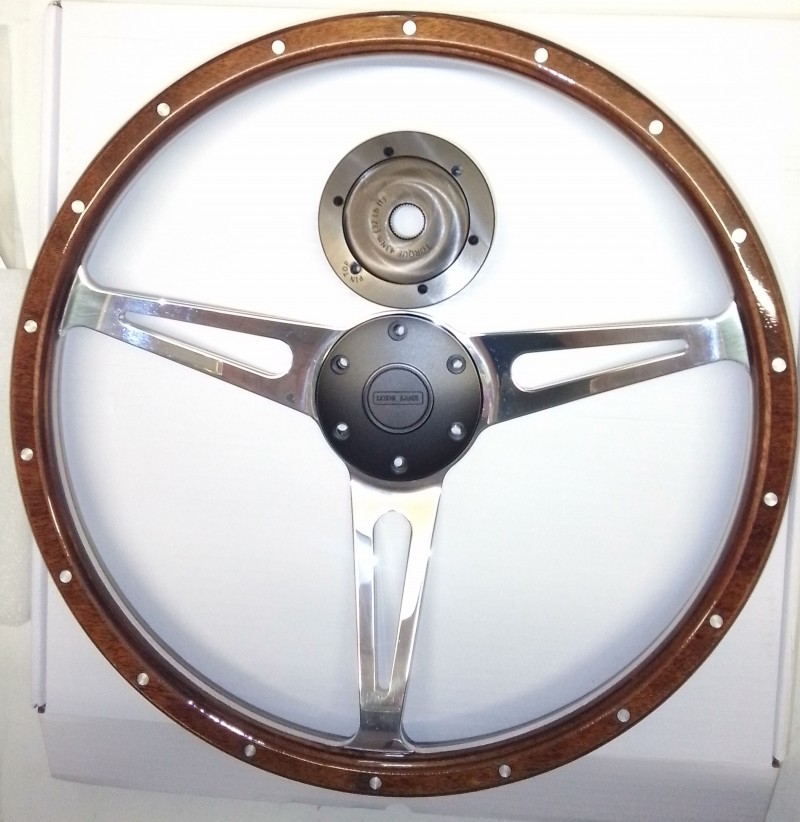 Kit Volant Bois 3 Branches Alu 15" et Moyeu noir 36 Cannelures OEM pour Defender
