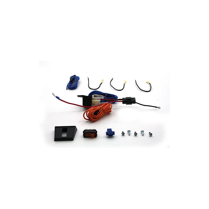 Le kit contient : faisceau, fusible, relais, interrupteur, connexions
